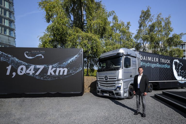 Vor drei Jahren hat Daimler Truck verkündet, in einem hohen Maße in die Wasserstofftechnologie zu investieren. Heute kann man sehen, wie weit das Unternehmen gekommen ist. Der Mercedes-Benz GenH2 Truck hat die 1.000-Kilometer-Marke mit einer Tankfüllung flüssigem Wasserstoff geknackt.