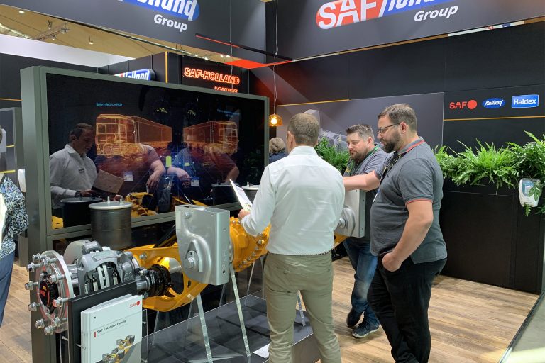 Elektrifizierung von Achsen, autonomes Fahren sowie die Konnektivität von Trailern sind Themen, mit denen der die SAF-HOLLAND Group in Kooperation mit dem schwedischen Bremssystemspezialisten Haldex die Transportbranche fit für die Zukunft machen möchten. Wie genau, das zeigten sie auf einem gemeinsamen Messestand in Karlsruhe.