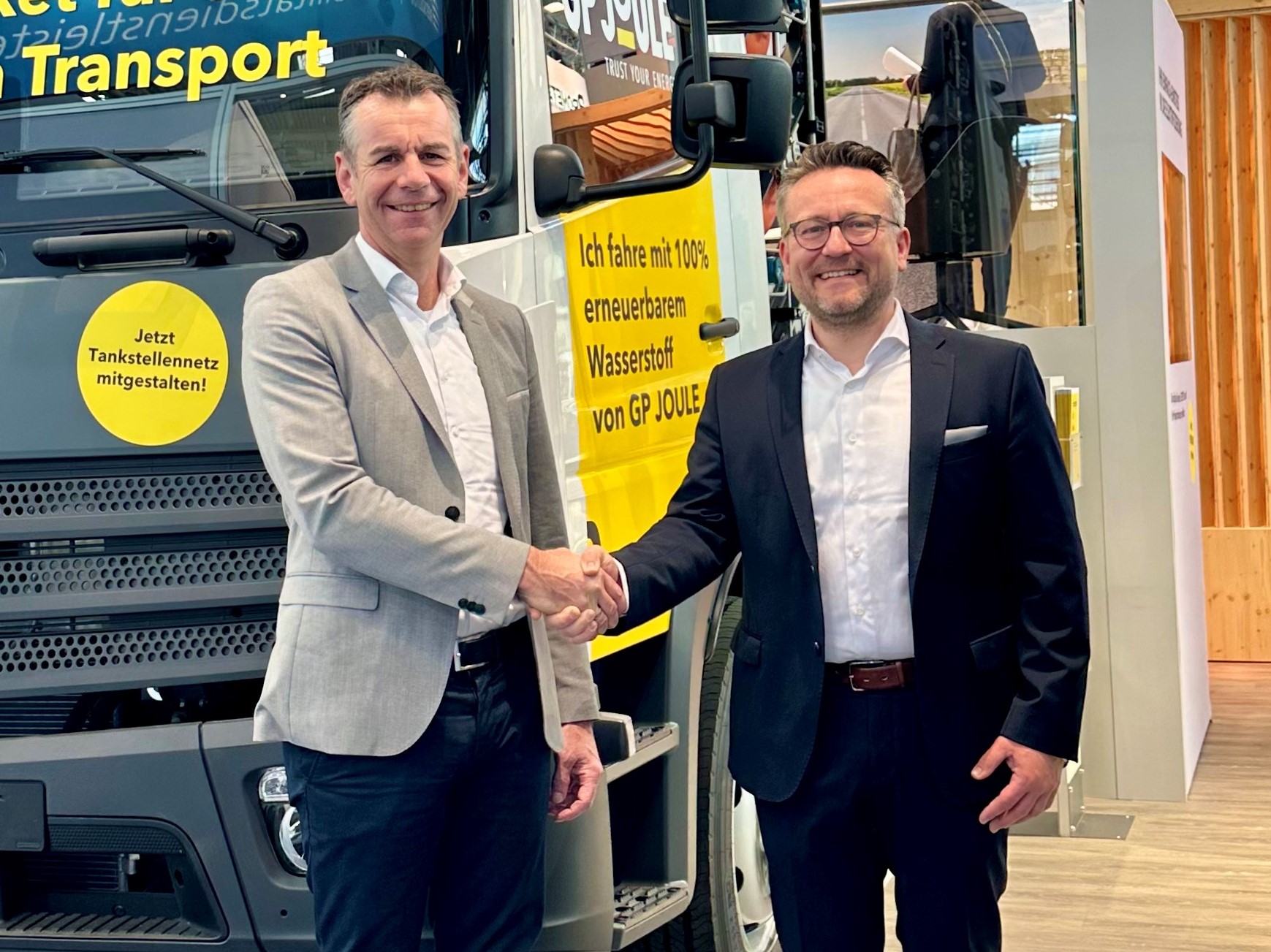 Gemeinsam wollen das Energiewende-Unternehmen GP JOULE und die Paul Group, Europas Marktführer im Sonderfahrzeugbau, die Verkehrswende im Gütertransport vorantreiben: Auf der Messe transport logistic in München vereinbarten sie eine Kooperation, bei der die Paul Group die Lieferung und Wartung von PH2P® Trucks mit Brennstoffzellen-Antrieb übernimmt. Im Gegenzug bietet GP JOULE die Wasserstoffversorgung sowie den Ausbau der H2-Infrastruktur an – und gibt die Fahrzeuge an seine Kunden weiter. Die ersten H2-Lkws sollen bereits ab Ende 2023 ausgeliefert werden.